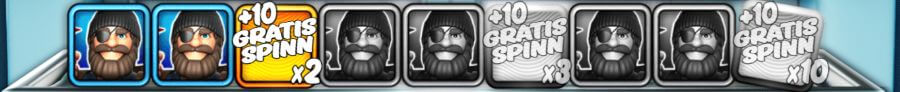 Under free spins-läget dyker där upp blå och röda Wild-symboler (fiskare) på hjulen. De fungerar som samlingsymboler och samlar ihop värden från alla pengasymboler som landar på spelplanen.